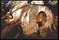 The kiln climbs a natural slope, which ensures the draw of heat from the main firebox at the front of the 300 cu. ft. interior space to the back chamber. Nine inches of fire brick is covered with a mixture of sandy clay from the site, mixed with as much perlite as possible. Embedded in this mud covering are as many miscellaneous scraps of insulating material as could be found.