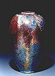 here for detail. Use the back arrow on your browser to return here.This glaze looks similar to some raku glazes but is, in fact, a totally different technique that I have developed over many years of experimentation. My goal was to create a piece that looks as though it could be very ancient and at the same time very comtemporary -- timeless.